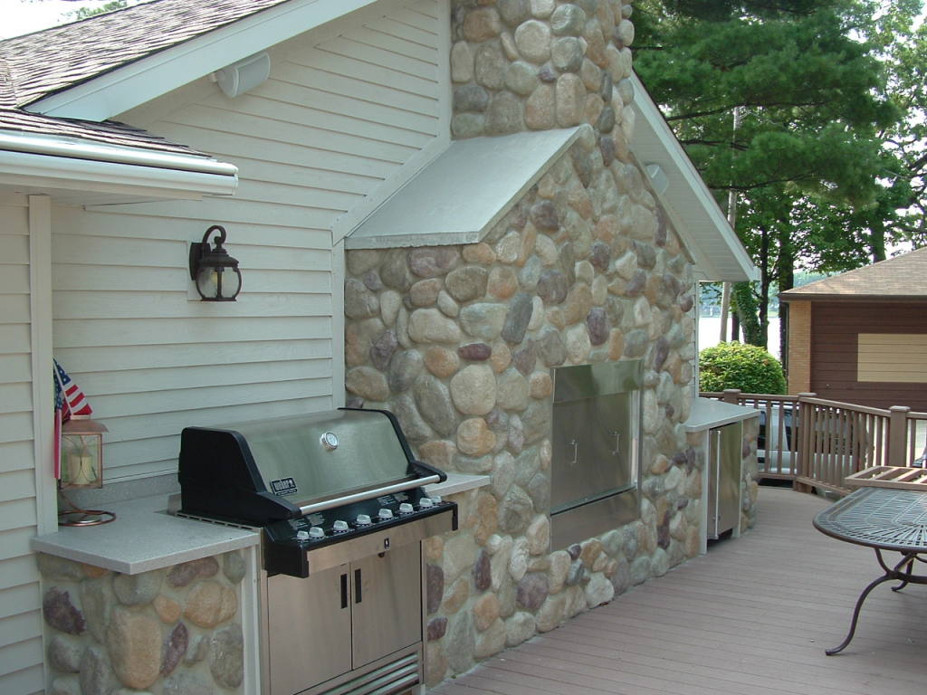 An outdoor kitchen area with fireplace is a great solution for entertaining.